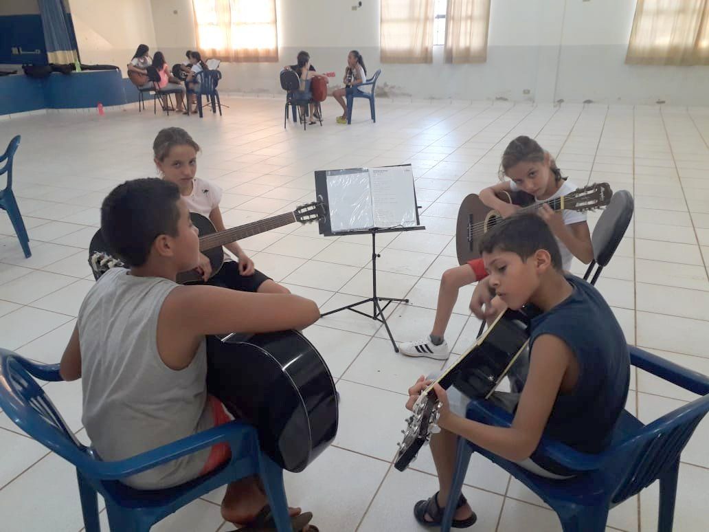 Dentre os diversos projetos ofertados pela Divisão de Cultura as aulas de violão contribuem para que os alunos desenvolvam suas habilidades, entre elas, imaginação, percepção, espontaneidade, criatividade, além do gosto pela arte musical. Investir em cultura é ter a certeza de que as crianças e jovens que exercem essas atividades terão maiores oportunidades no mercado de trabalho, articulou o Prefeito Ailton Valloto.
